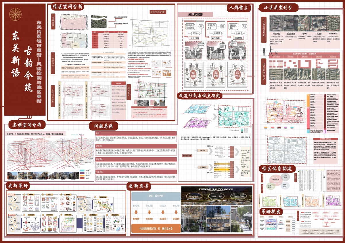 片区住区的前期分析,包括基础资料分析,人群感知、历史沿革等,建筑系统的分析,建筑质量、建筑肌理、建筑分类等;公服系统与绿地系统的现状分析;其次为住区的设计理念引出、控制策略提出,对于住区的体系构建;住区空间的改造愿景。