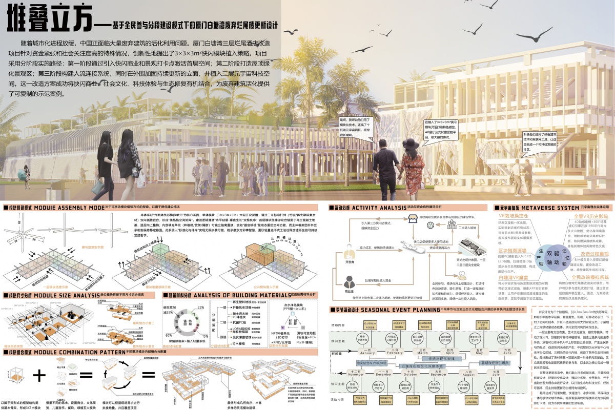 项目名称:堆叠立方—-基于全民参与分段建设模式下的厦门白塘湾废弃烂尾楼更新设计