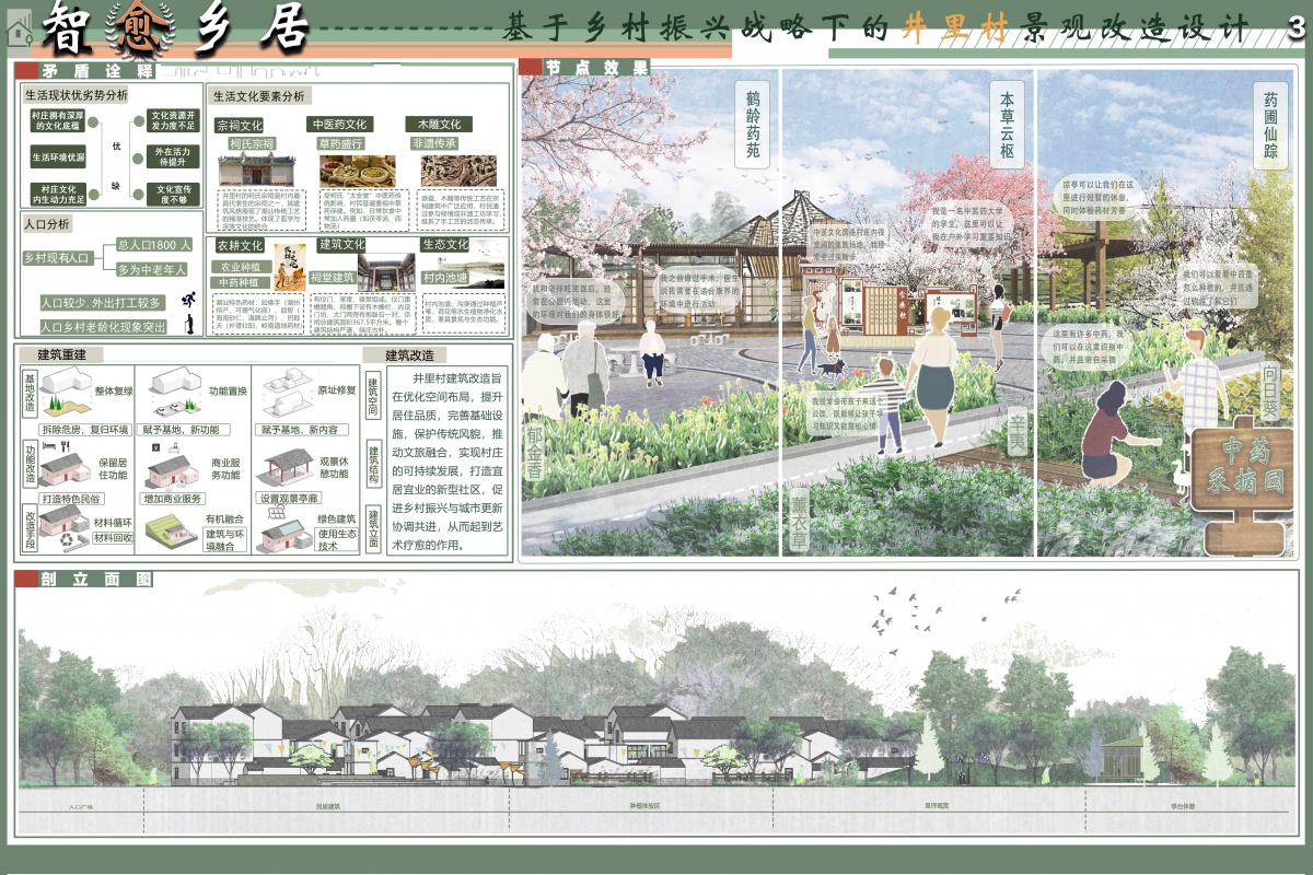 深度剖析了井里村现存矛盾,包括人口流失、建筑老化、基础设施落后等问题,同时挖掘了与生活文化要素的关联及融合点。通过对矛盾的诠释,探寻针对性解决方案,并在保留乡村特色的基础上,融入文化内涵,实现传统与现代的碰撞,推动村落文化传承与景观品质显著提升。