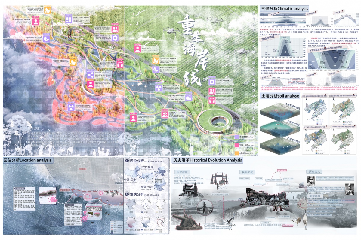 本项目选址于辽宁省盘锦市大洼区临近渤海的红海滩景区。该区域正面临着严峻的生态挑战:由于海岸线变迁、土壤与海水盐分上升及气候环境变化,导致了严重的海水倒灌与土壤盐碱化问题,致使独特的红海滩景观出现明显退化,生态系统遭受破坏,滨水空间视觉通透性受阻。这一生态退化过程进一步对当地以渔业、养殖业和制盐业为代表的产业构成负面冲击,凸显了进行生态修复与可持续规划的紧迫性。