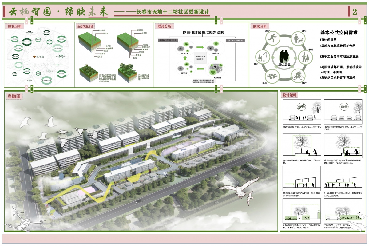 先分析社区现状、生态、理论和居民需求,然后提出设计策略,对社区进行更新,让社区更符合居民休闲娱乐、文化传承等需求,同时改善生态和空间问题。