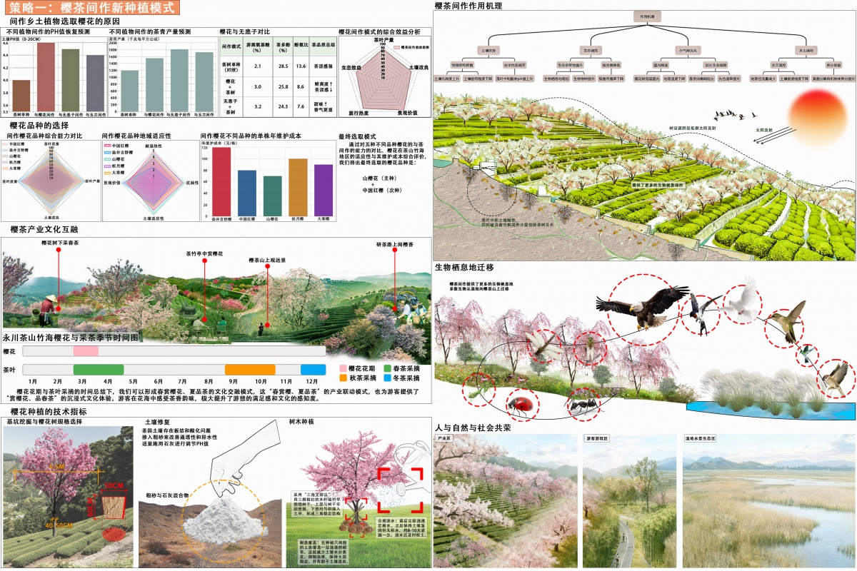 创新樱茶间作模式,科学选种并分析其作用机理,实现生态、经济、景观效益协同。