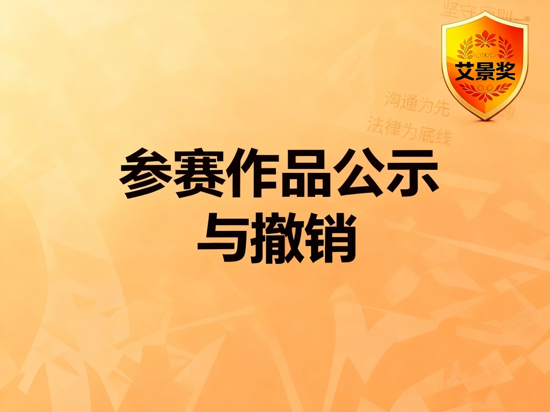 为确保艾景奖的严肃性与历史完整性,特此声明:所有参赛作品一经提交即视为授权组委会进行非商业性永久公示。原则上公示内容不予撤销,如因存在经证实的知识产权争议或重大不实信息等特殊情况确需申请撤销,参赛者须知晓并同意,撤销公示将同步导致其所有已获奖项、称号与证书被立即取消并收回,此决定不可逆转。所有申请须按流程提交,最终解释权归组委会所有。