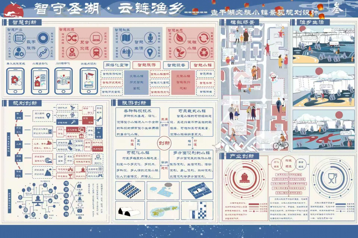 本张图展示了各个地区的空间分析,以及季节变化特点,分析了来往人群以及人数,加强渔文化的科普,增加了健康步道,供人们与运动以及休闲,增加了小镇的空间感和体验感。同时鸟瞰图展示了设计中的“渔戏水间”“神来神往”“似入水中”“身居其中”“游戏莲叶”等特色文化的细节展示,增加了小镇的文化特色。